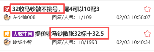 马钞散张上涨至32元左右