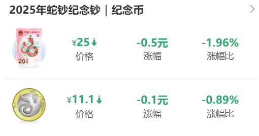 二轮生肖蛇年纪念币下跌至11.1元左右