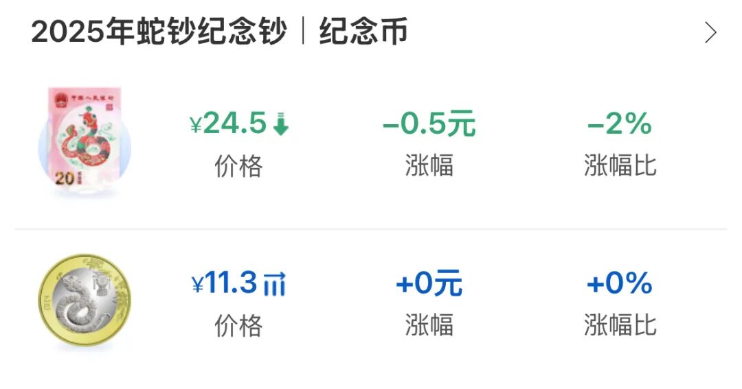 二轮生肖蛇年纪念币稳定在11.3元左右