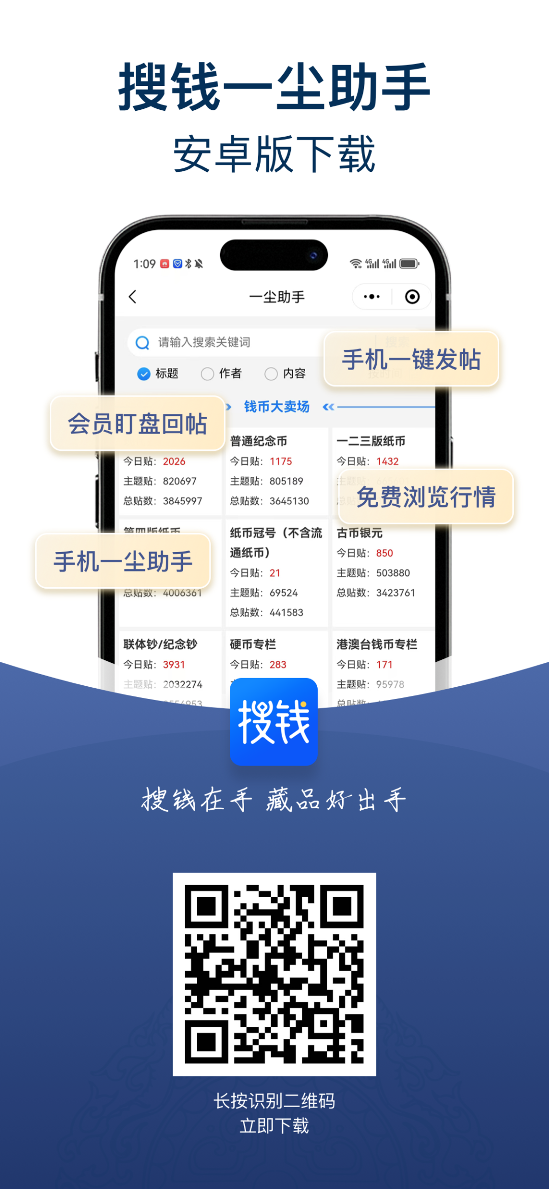 用搜钱一尘助手,省时间,提效率!离市也能盯行情,在外随时发帖回帖!