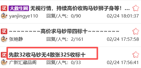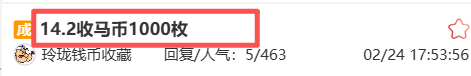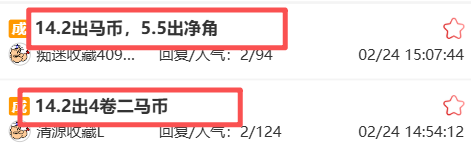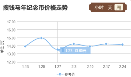 节前受市场情绪影响,马年纪念币价格一度回落至13.8元左右。