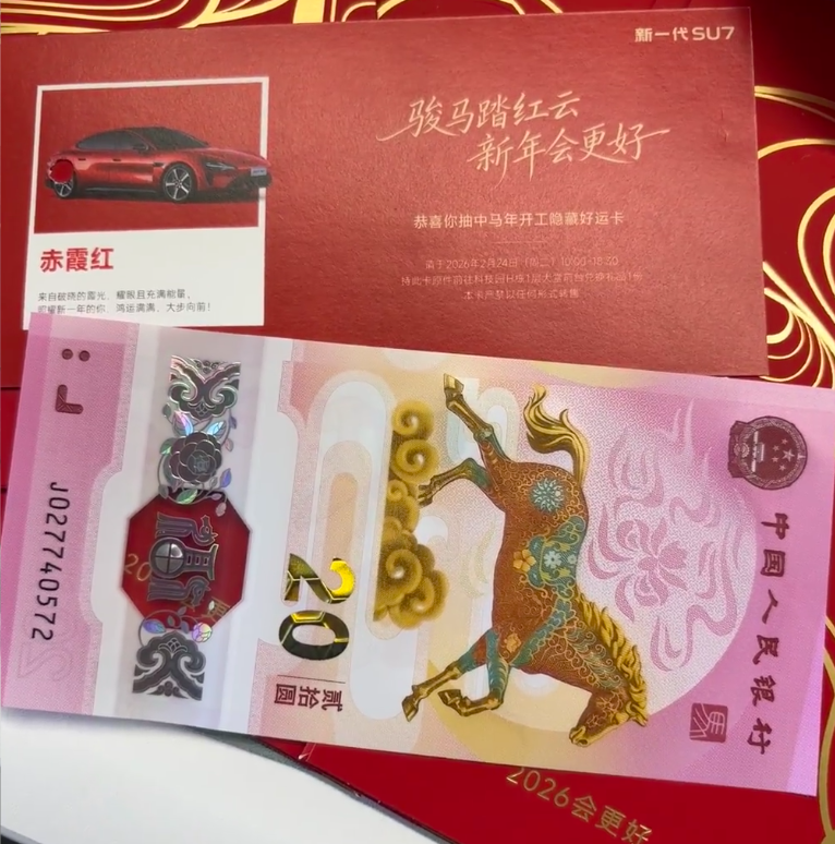 这波操作不仅带火了马年纪念钞,还顺带带火了SU7的新配色。