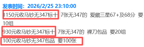 经过一个月的市场沉淀,马钞通货价格从年前的30元左右小幅回升到31元左右,无4散张在32.5元左右。