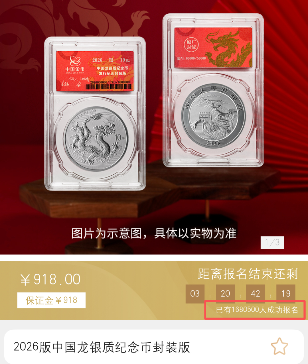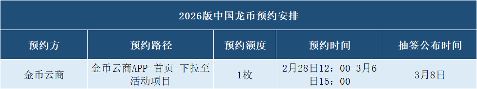 2026版中国龙银质纪念币封装版境内首发,限量5万枚,发售价918元/枚,每人限购1枚,金币云商报名3月6日15:00截止。