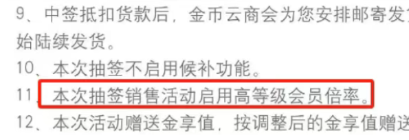 根据金币云商的活动说明,本次抽签预约启用了高等级会员倍率机制。