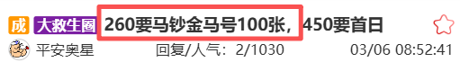 无2347(金马号)上涨至260元左右