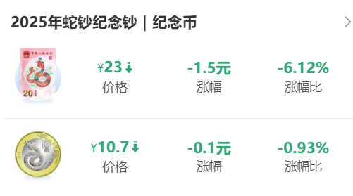 二轮生肖蛇年纪念币下跌至10.7元左右