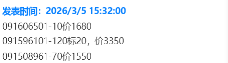 注:行情变化频繁,所列价格仅供参考,不可作为成交依据和唯一判断,避免给您造成损失。