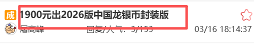 2026中国龙银币封装版(闷包)下跌至2400元左右