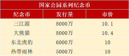 值得一提的是,由于前几枚市场反响一般,发行量一减再减,去年的雨林普通纪念币币已经降到5000万枚,目前三江源、虎豹和雨林币的市价都跌回了面值。