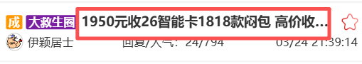 2026版中国龙智能卡近期跌破1818元发行价,一线市场已出现1810元现货成交。闷包价格勉强维持在1950元左右,但成交量稀少,币商接盘意愿低迷。