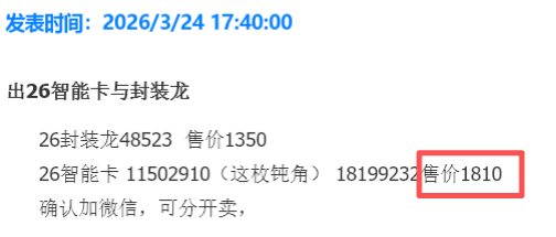 当前位置:首页 > 钱币头条 > 3月25日-破发!2026龙银币智能卡跌破发行价,封装版行情两级分化!