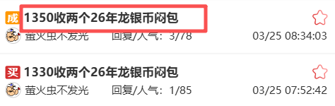 2026中国龙银币封装版(闷包)下跌至1350元左右