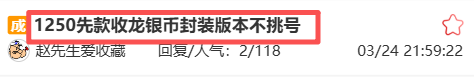 2026龙银币封装版带4不挑号稳定在1250元左右