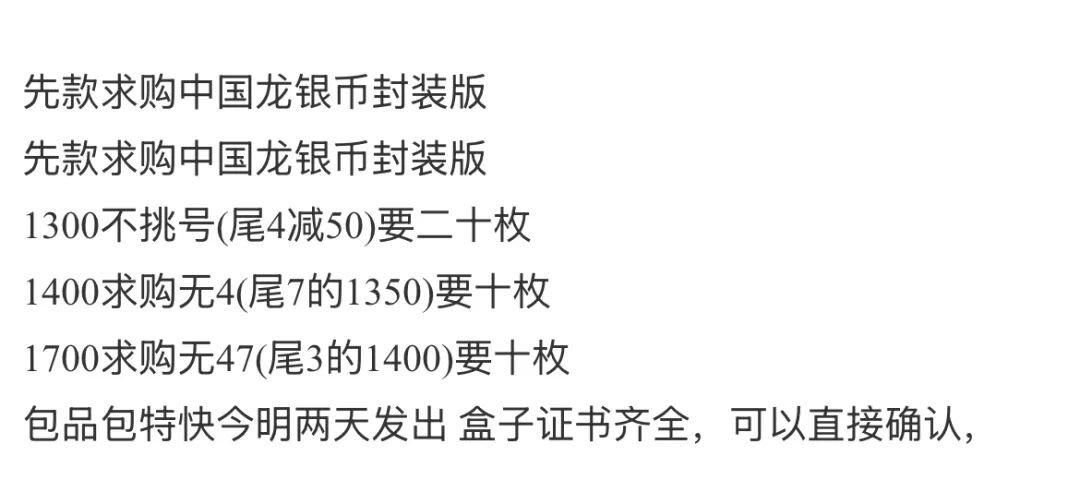 2026龙银币封装版带4不挑号上涨至1300元左右