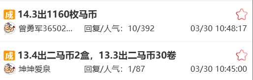 二轮马年纪念币稳定在13.3元左右