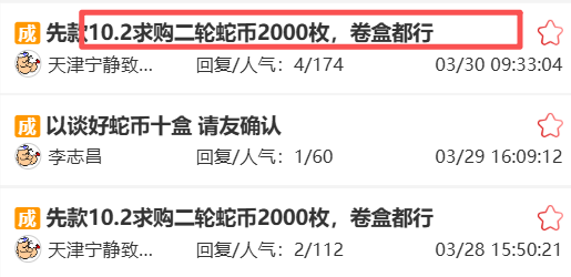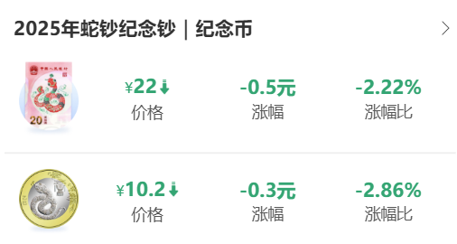 二轮生肖蛇年纪念币下跌至10.2元左右