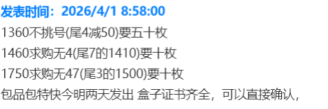 无3457(朦胧号)标十下跌至760元左右(含6张)