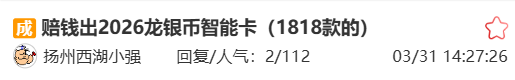 2025龙银币智能卡两枚套装稳定在1800元左右