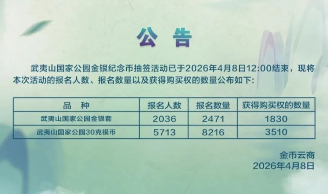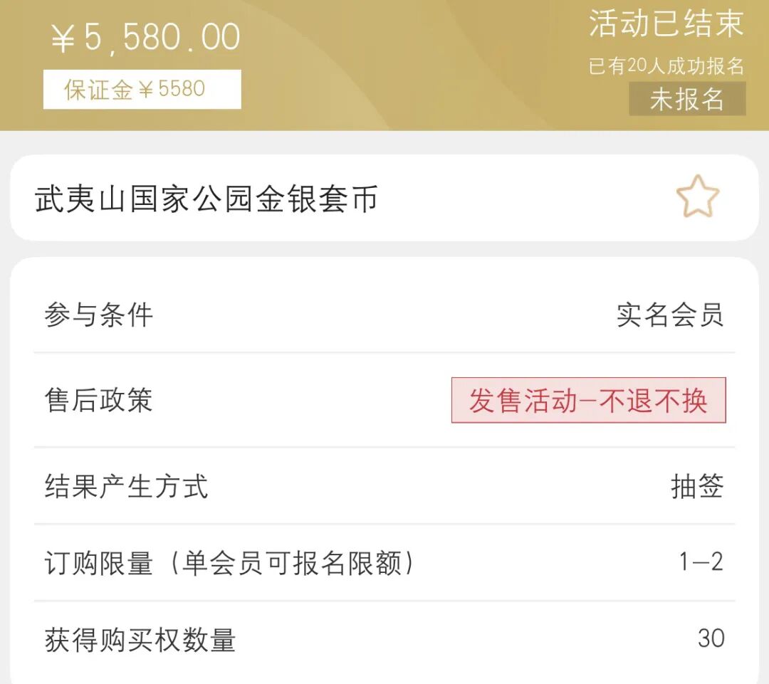 3.武夷山国家公园金银纪念币预约抽签收官 收藏参与热情整体低迷