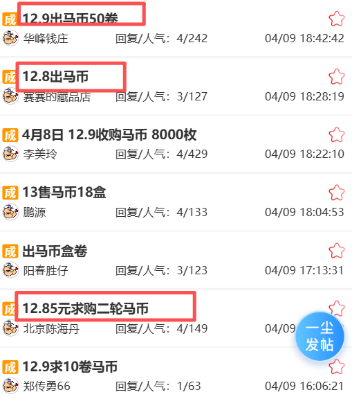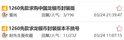 点击下方图片,进入搜钱一尘盯盘助手,查一尘网实时行情,看更多纪念币钞、纸币、硬币、邮票真实买卖贴、成交贴、市场价格!支持盯盘提醒、手机发帖、一键传高清图,挂救生圈、评分。