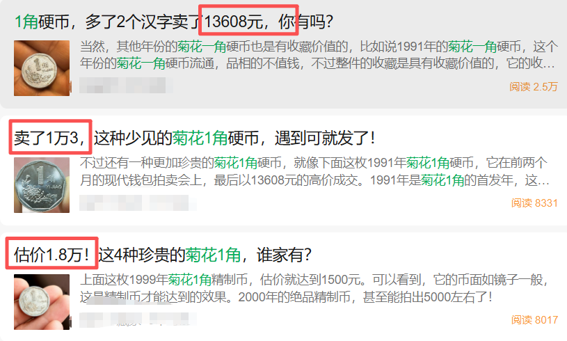 关于“菊花一角硬币天价”的消息在网络上频繁刷屏。