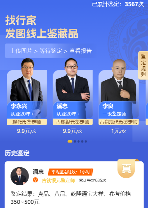 普通藏友很难自行判断币的真伪和错版价值。也可以试试搜钱人工鉴定,在线提交清晰图片,专业老师快速给出参考意见。(点击下图,进入搜钱鉴定)