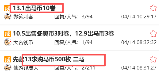 4月15日12:00 马钞/马币/龙银币/蛇钞/龙钞/搜钱实时行情价格,马钞金马系列大涨!