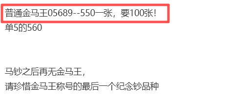 :马钞行情变化频繁,所列价格仅供参考,不可作为成交依据和唯一判断,避免给您造成损失。