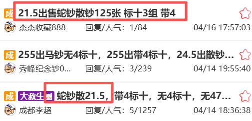 如今市场蛇钞批量收购价仅21-21.5元,出售价也在21-21.5元。