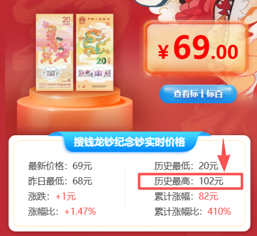 2024年龙钞发行后,价格一路冲上百元,点燃了整个生肖钞板块。