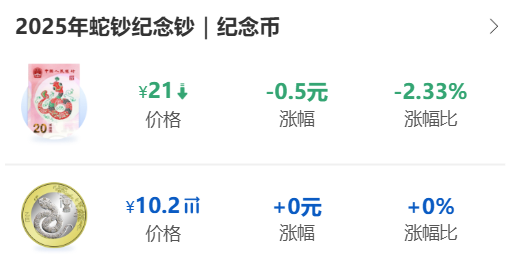 二轮生肖蛇年纪念币稳定在10.15-10.2元左右