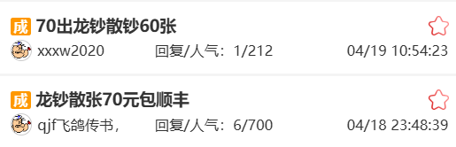 龙钞通货稳定在70元左右