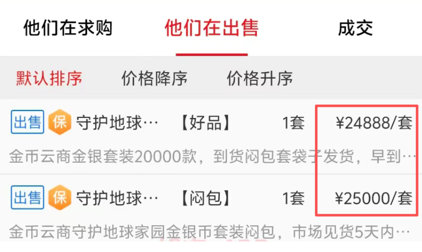 大宗市场已出现该套纪念币的期货报价,行情差异显著。
