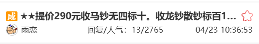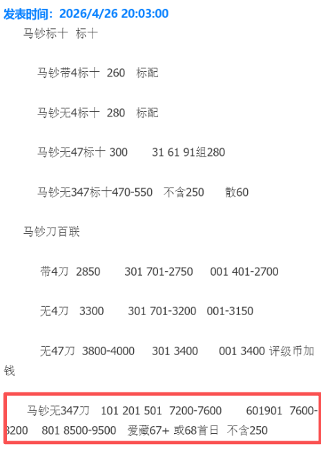 无247标十爱藏67+(天马标)稳定在2600元左右