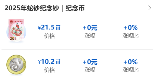 二轮生肖蛇年纪念币稳定在10.15-10.2元左右